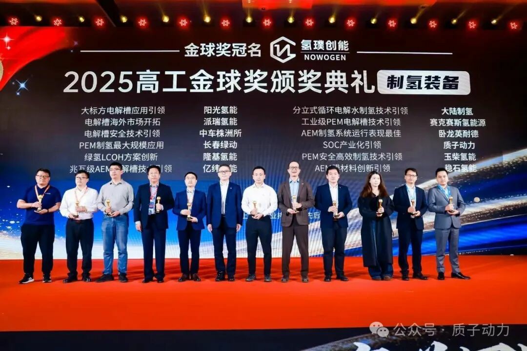近日,2025(第七屆)高工氫電年會暨高工金球獎頒獎典禮在深圳盛大召開,質子動力有幸榮獲“2025高工金球獎”榮譽,并在會議期間展示了多款主要產品。