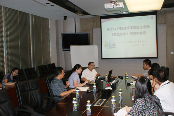 應集團風險控制部的邀請,8月30日下午,福建天衡聯合律師事務所的邱春暉律師為我司學員舉辦了《2013版建設工程施工合同范本解讀》專題講座。2013版合同范本是為指導建設工程施工合同當事人的簽約行為、維護合同當事人的合法權益,由住房城鄉建設部、國家工商行政管理總局在舊版基礎上進行了修訂,并于2013年7月1日起開始執行。新的合同范本對當事人的施工合同的履約管理,尤其是變更索賠提出了與國際接軌的一系列新要求。本次講座對新版合同范本的相關條款及其更新之處進行了詳細解讀,以幫助學員掌握其中的重點內容和相關疑難法律問題。