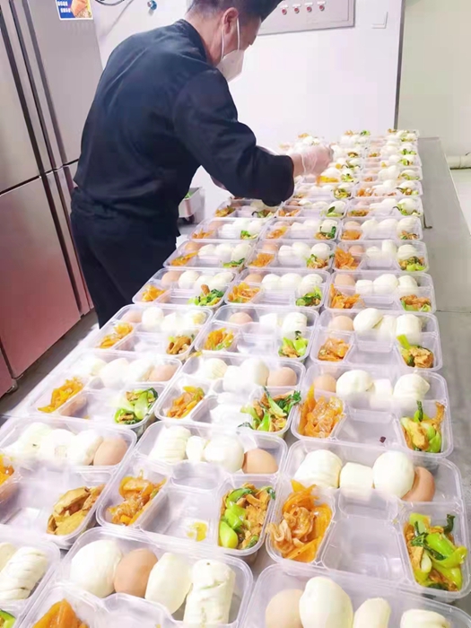 清掃客房的3位工作人員,每日清掃客房129間,對酒店公共區域和客房進行無死角的消毒消殺,為入住客人和抗疫一線人員提供安全、整潔的住宿環境;廚房3位工作人員,每日準備營養早餐260余份,克服疫情時期物資供應的重重困難,對每一天的早餐精心搭配,讓入住酒店的“大白”們,能夠補足能量,奔赴一線。? “你守護城市,我們守護你”,堅持為客人提供品質服務和法式浪漫的酒店團隊,在艱難的時刻,用異常堅毅的力量,堅守在崗位上,奔波在酒店,為滯留客人提供家般溫暖,為抗疫逆行者提供優質的保障。